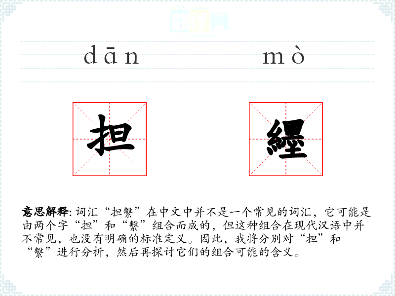 词汇“担繫”在中文中并不是一个常见的词汇,它可能是由两个字“担”和“繫”组合而成的,但这种组合在现代汉语中并不常见,也没有明确的标准定义。因此,我将分别对“担”和“繫”进行分析,然后再探讨它们的组合可能的含义。