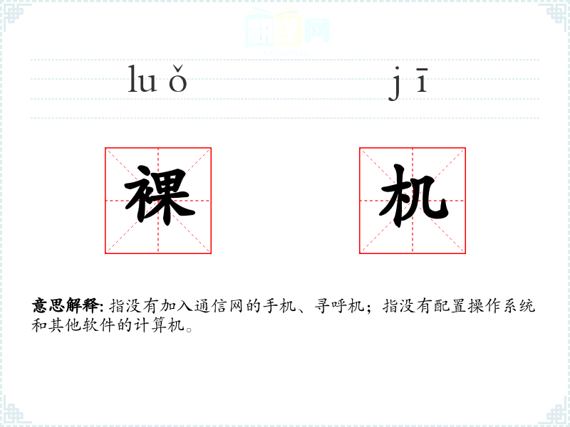 指没有加入通信网的手机、寻呼机;指没有配置操作系统和其他软件的计算机。