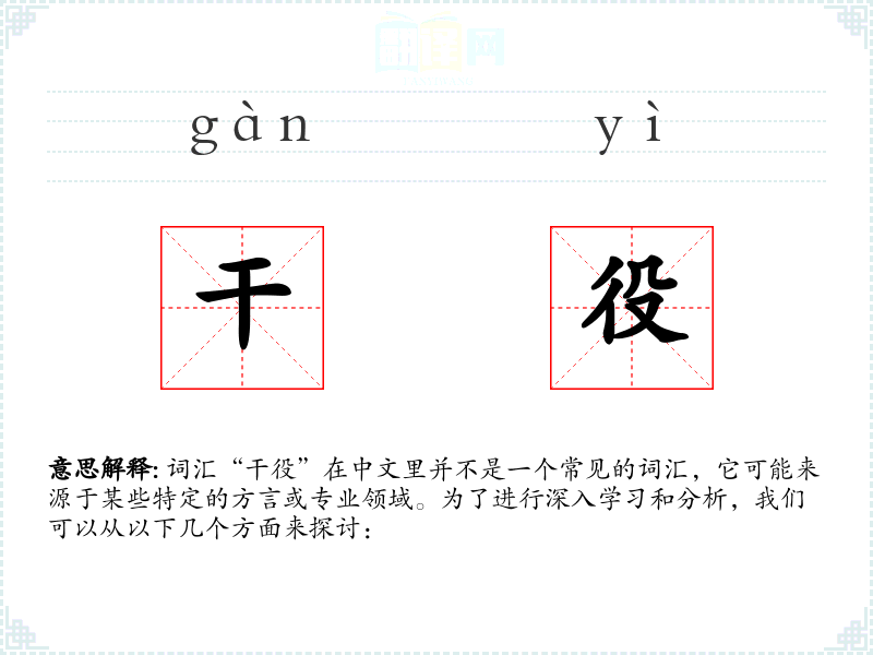 词汇“干役”在中文里并不是一个常见的词汇,它可能来源于某些特定的方言或专业领域。为了进行深入学习和分析,我们可以从以下几个方面来探讨: