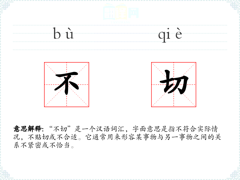 “不切”一词源于汉语,其基本结构为“不”(否定)和“切”(贴近、符合)。在古代汉语中,“切”已有贴近、符合的意思,而“不切”则是对其的否定。