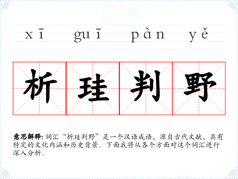 词汇“析珪判野”是一个汉语成语,源自古代文献,具有特定的文化内涵和历史背景。下面我将从各个方面对这个词汇进行深入分析。