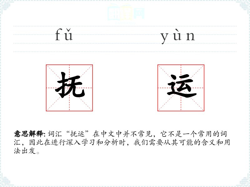 词汇“抚运”在中文中并不常见,它不是一个常用的词汇,因此在进行深入学*和分析时,我们需要从其可能的含义和用法出发。