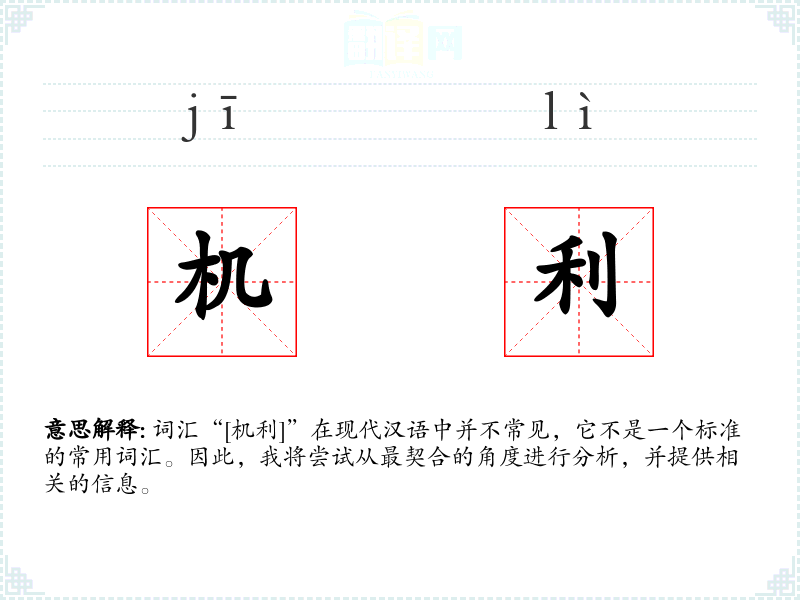 词汇“[机利]”在现代汉语中并不常见,它不是一个标准的常用词汇。因此,我将尝试从最契合的角度进行分析,并提供相关的信息。