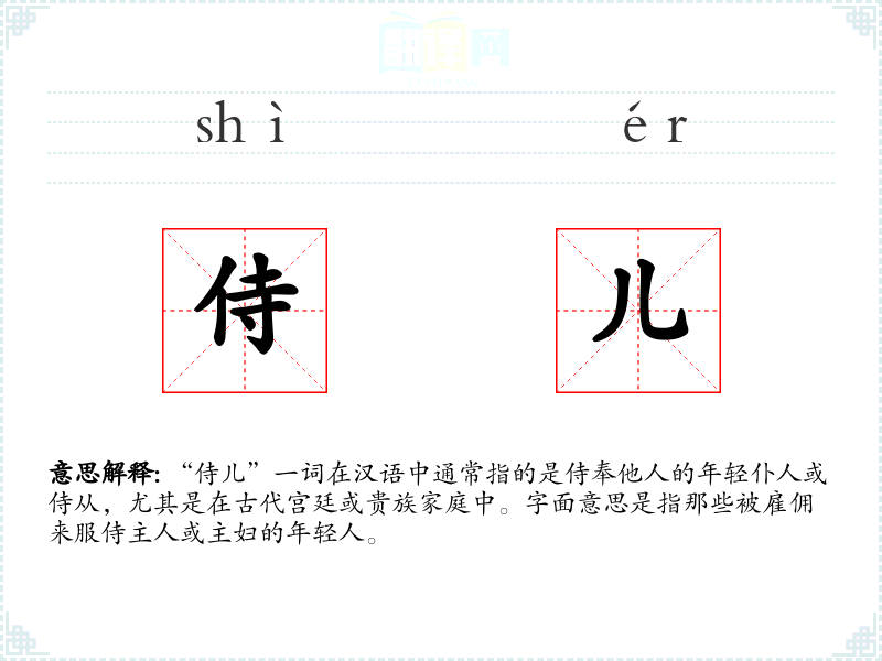 “侍儿”一词在汉语中通常指的是侍奉他人的年轻仆人或侍从,尤其是在古代宫廷或贵族家庭中。字面意思是指那些被雇佣来服侍主人或主妇的年轻人。
