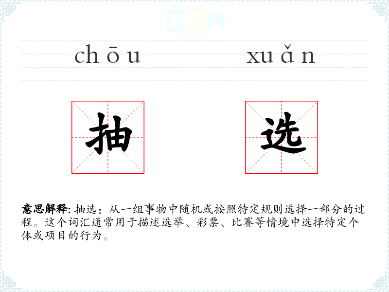 "抽选"的意思解释、抽选是什么意思由翻译网汉语词典查词提供。