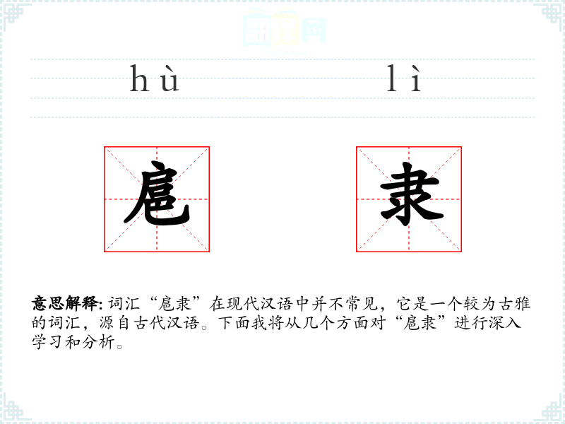 在现代生活中,“扈隶”这个词并不常用,但在历史研究或古代文学的讨论中,它仍然是一个重要的词汇。例如,在研究古代官员的出行仪式时,扈隶的角色和职责是不可忽视的。