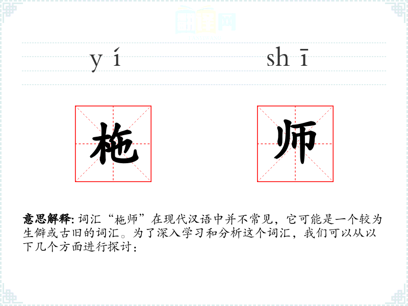 词汇“柂师”在现代汉语中并不常见,它可能是一个较为生僻或古旧的词汇。为了深入学习和分析这个词汇,我们可以从以下几个方面进行探讨: