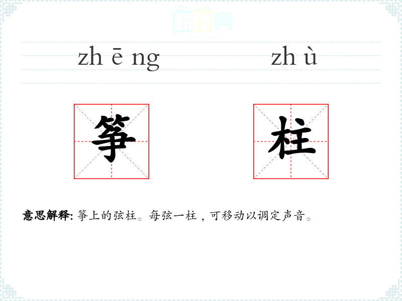 筝上的弦柱。每弦一柱﹐可移动以调定声音。