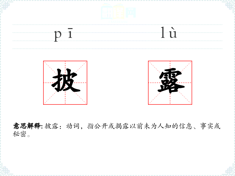 披露:动词,指公开或揭露以前未为人知的信息、事实或秘密。