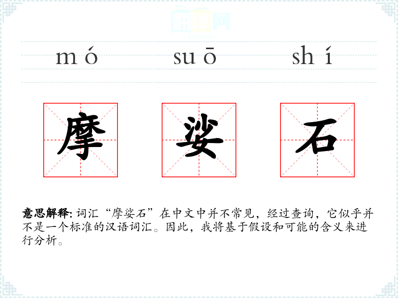 词汇“摩娑石”在中文中并不常见,经过查询,它似乎并不是一个标准的汉语词汇。因此,我将基于假设和可能的含义来进行分析。