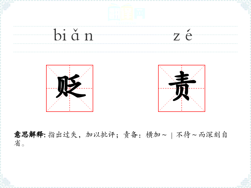 指出过失,加以批评;责备:横加~|不待~而深刻自省。
