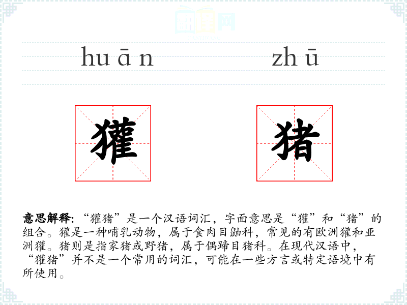 “獾猪”是一个汉语词汇,字面意思是“獾”和“猪”的组合。獾是一种哺乳动物,属于食肉目鼬科,常见的有欧洲獾和亚洲獾。猪则是指家猪或野猪,属于偶蹄目猪科。在现代汉语中,“獾猪”并不是一个常用的词汇,可能在一些方言或特定语境中有所使用。