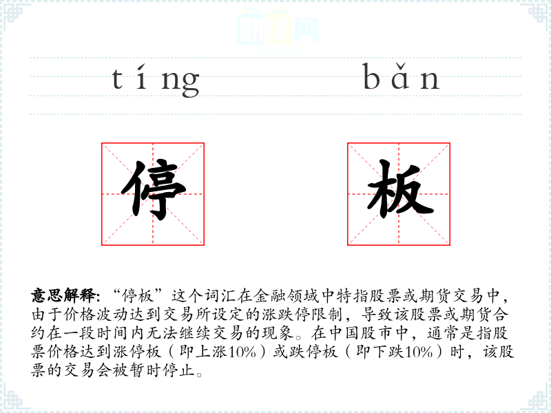 - 专业领域:在金融领域,“停板”是一个专业术语,用于描述股票或期货交易的特殊状态。