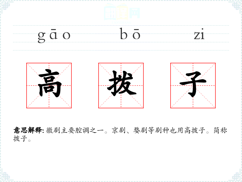 徽剧主要腔调之一。京剧、婺剧等剧种也用高拨子。简称拨子。