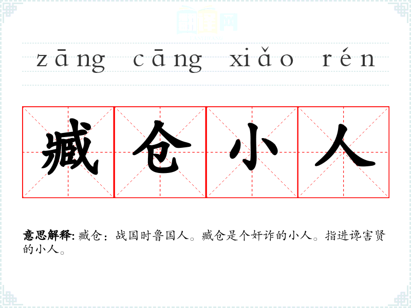 臧仓:战国时鲁国人。臧仓是个奸诈的小人。指