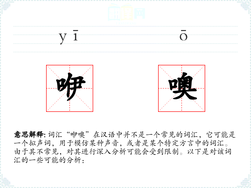 - 理解:“咿噢”是一个不常见的词汇,可能用于模仿声音或表达特定情感。