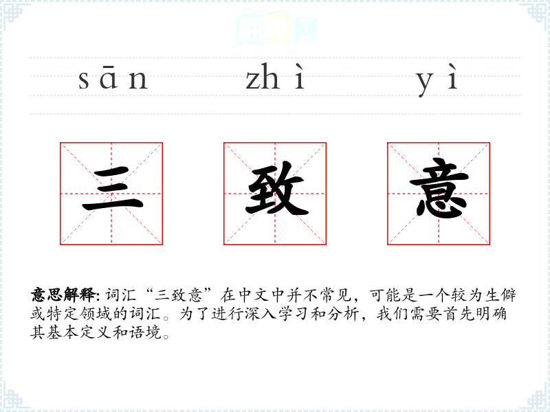 词汇“三致意”在中文中并不常见,可能是一个较为生僻或特定领域的词汇。为了进行深入学习和分析,我们需要首先明确其基本定义和语境。