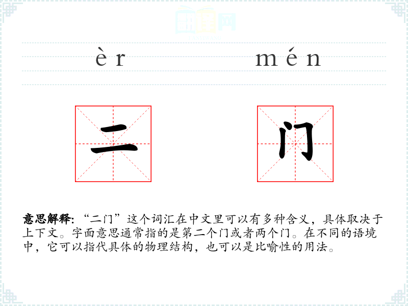 “二门”这个词汇虽然简单,但在不同的语境中可以有丰富的应用和深层的文化含义。在我的语言学*和表达中,理解和灵活运用这样的词汇可以增强我的表达能力和文化理解。