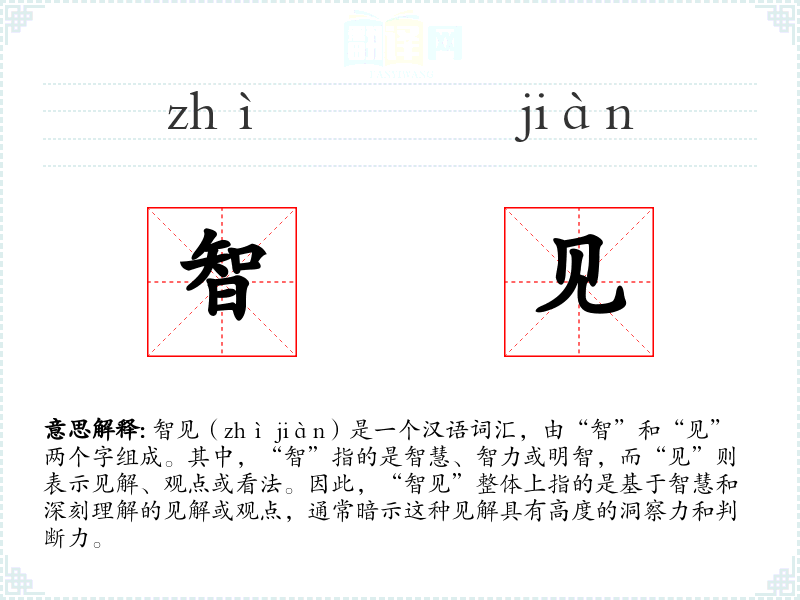 智见(zhì jiàn)是一个汉语词汇,由“智”和“见”两个字组成。其中,“智”指的是智慧、智力或明智,而“见”则表示见解、观点或看法。因此,“智见”整体上指的是基于智慧和深刻理解的见解或观点,通常暗示这种见解具有高度的洞察力和判断力。