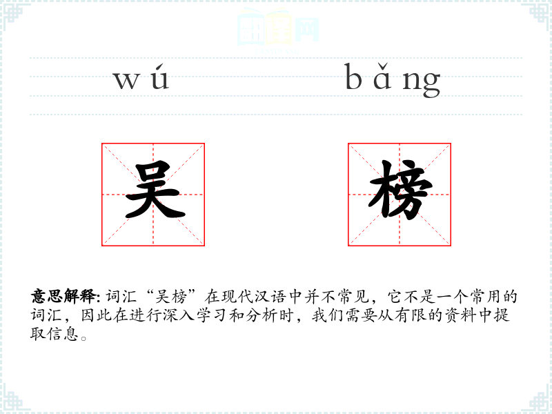 词汇“吴榜”在现代汉语中并不常见,它不是一个常用的词汇,因此在进行深入学习和分析时,我们需要从有限的资料中提取信息。