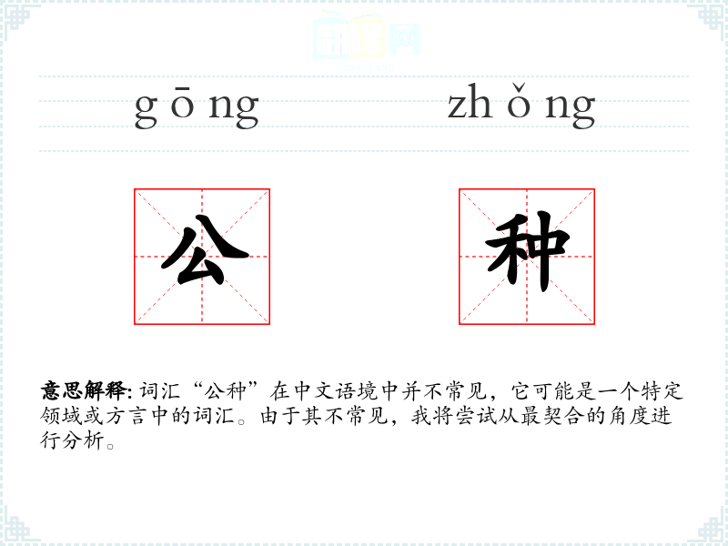 词汇“公种”在中文语境中并不常见,它可能是一个特定领域或方言中的词汇。由于其不常见,我将尝试从最契合的角度进行分析。