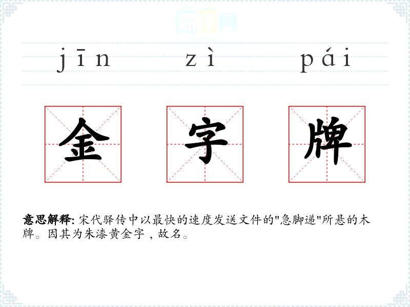 金字牌的分字解释