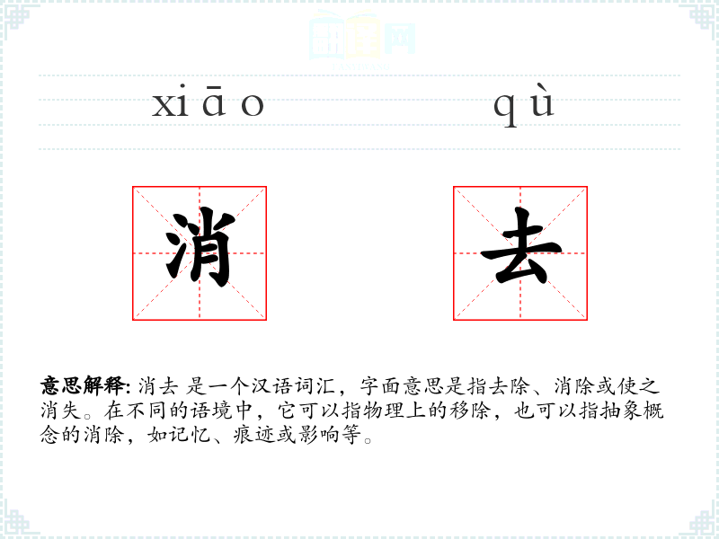 消去 是一个汉语词汇,字面意思是指去除、消除或使之消失。在不同的语境中,它可以指物理上的移除,也可以指抽象概念的消除,如记忆、痕迹或影响等。