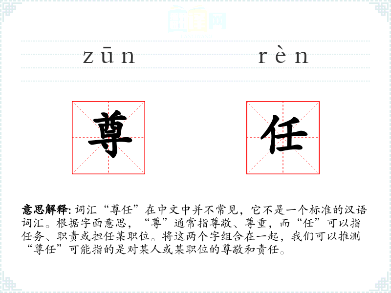 由于“尊任”不是一个常用词汇,它在不同语境下的使用非常有限。在文学作品中,如果出现这个词,可能是为了强调对某人或某职位的特别尊重和责任。在口语或专业领域中,这个词可能不会被使用,因为更常见的表达方式是分开使用“尊敬”和“责任”。