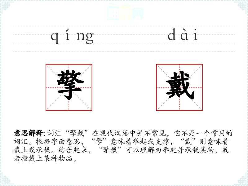 - 词源:“擎”和“戴”都是古代汉语词汇,源自古代的仪式和日常行为。