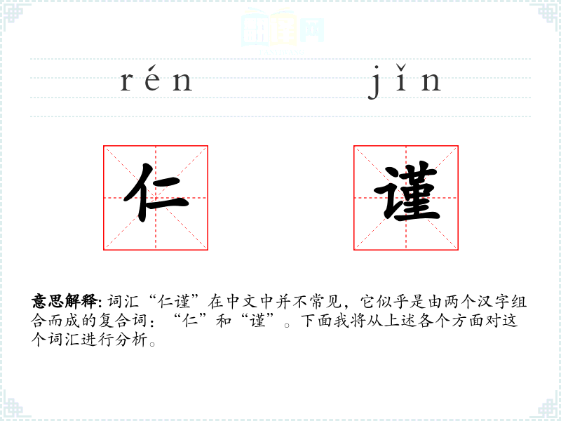 词汇“仁谨”在中文中并不常见,它似乎是由两个汉字组合而成的复合词:“仁”和“谨”。下面我将从上述各个方面对这个词汇进行分析。