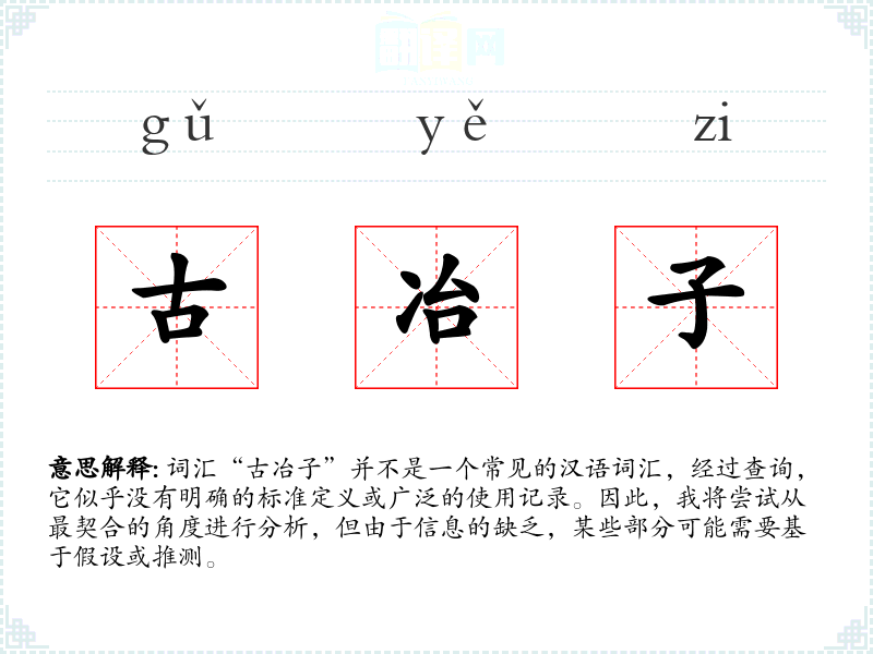 由于“古冶子”不是一个标准词汇,我们无法给出确切的基本定义。它可能是某个特定地区、方言或特定社群中的词汇,或者是某个特定文献、故事中的人物名字。