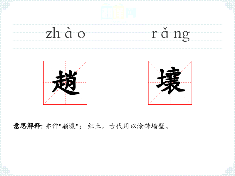 亦作"頳壤"; 红土。古代用以涂饰墙壁。