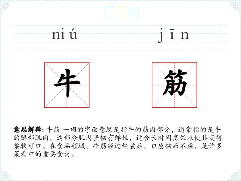- 专业领域:在烹饪和食品科学领域,牛筋是一个专业术语,指的是特定的食材,需要特定的处理和烹饪技巧。