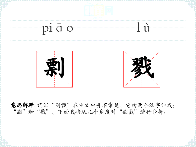 词汇“剽戮”在中文中并不常见,它由两个汉字组成:“剽”和“戮”。下面我将从几个角度对“剽戮”进行分析: