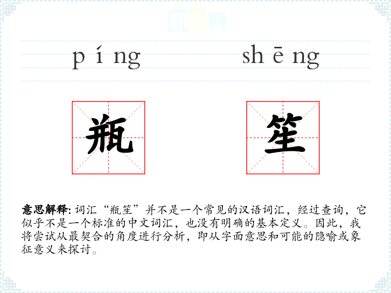 由于“瓶笙”不是一个标准词汇,个人应用非常有限。如果我在某个文学作品中遇到它,我可能会思考它所代表的深层含义。