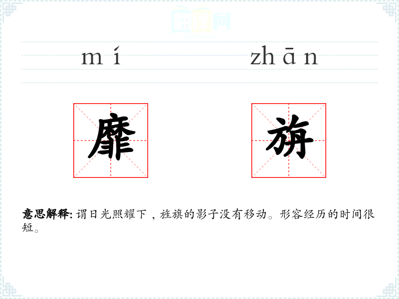 谓日光照耀下﹐旌旗的影子没有移动。形容经历的时间很短。