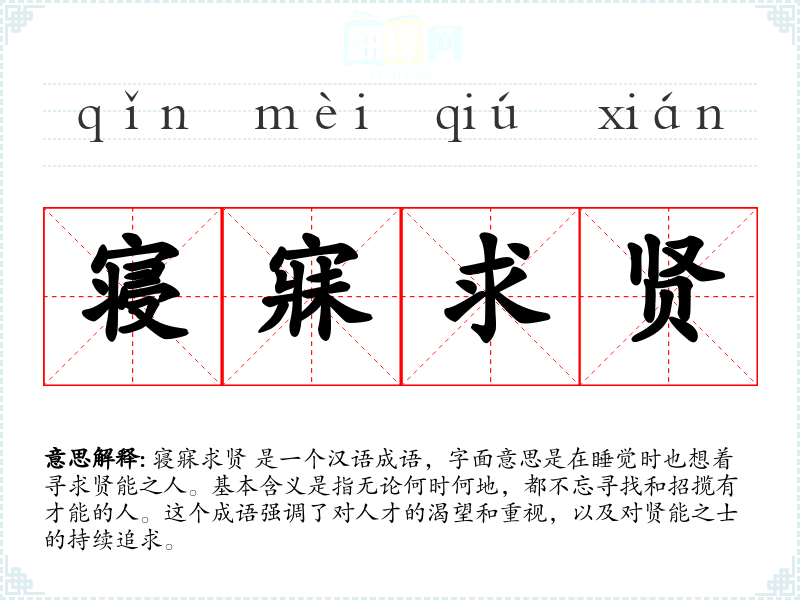 在传统文化中,寝寐求贤** 体现了对人才的尊重和重视。在社会背景中,这个成语反映了人才在社会发展中的重要性,以及对优秀人才的持续需求。