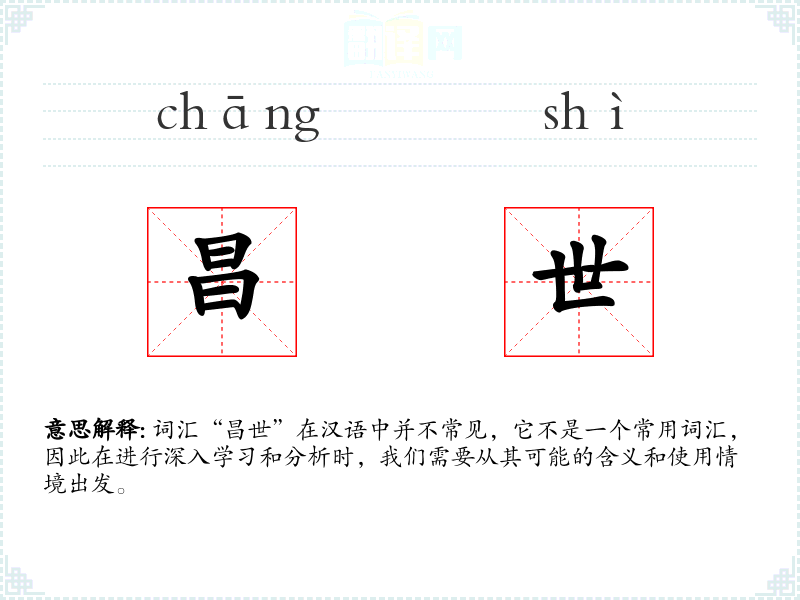 词汇“昌世”在汉语中并不常见,它不是一个常用词汇,因此在进行深入学*和分析时,我们需要从其可能的含义和使用情境出发。