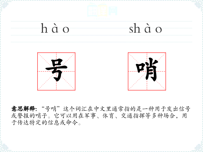 "号哨"的意思解释、号哨是什么意思由翻译网汉语词典查词提供。
