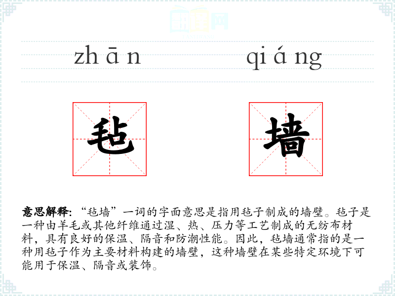 - 反义词:砖墙、石墙(这些材料通常不具备毡墙的保温隔音特性)