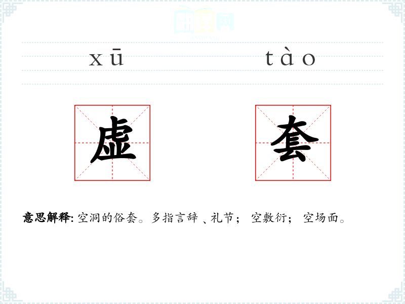 空洞的俗套。多指言辞﹑礼节; 空敷衍; 空场面。