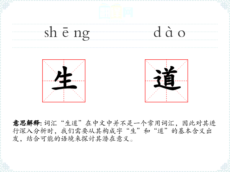 词汇“生道”在中文中并不是一个常用词汇,因此对其进行深入分析时,我们需要从其构成字“生”和“道”的基本含义出发,结合可能的语境来探讨其潜在意义。
