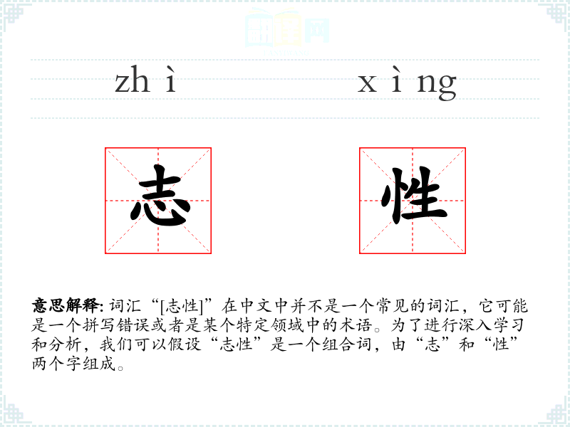 结合这两个字,“志性”可能指的是与个人意愿或目标相关的性质或性格特征。