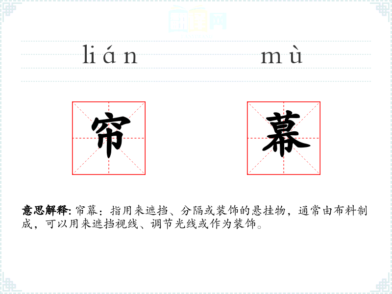 - 同义词:窗帘、幕布、帷幔
