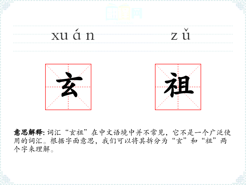 词汇“玄祖”在中文语境中并不常见,它不是一个广泛使用的词汇。根据字面意思,我们可以将其拆分为“玄”和“祖”两个字来理解。