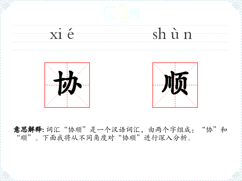 词汇“协顺”是一个汉语词汇,由两个字组成:“协”和“顺”。下面我将从不同角度对“协顺”进行深入分析。