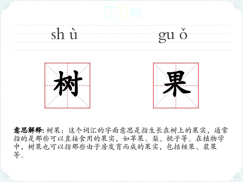 "树果"的意思解释、树果是什么意思由翻译网汉语词典查词提供。