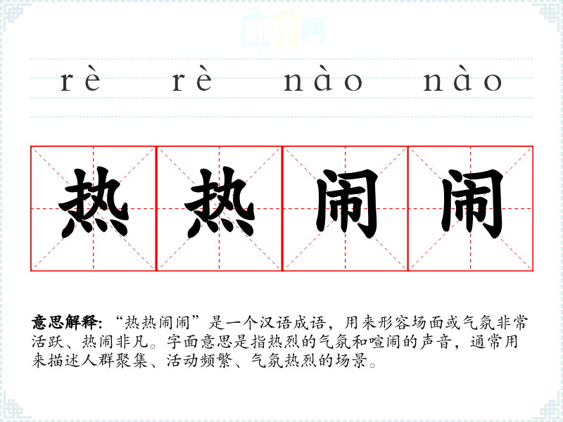 - 同义词:熙熙攘攘、沸沸扬扬、热闹非凡