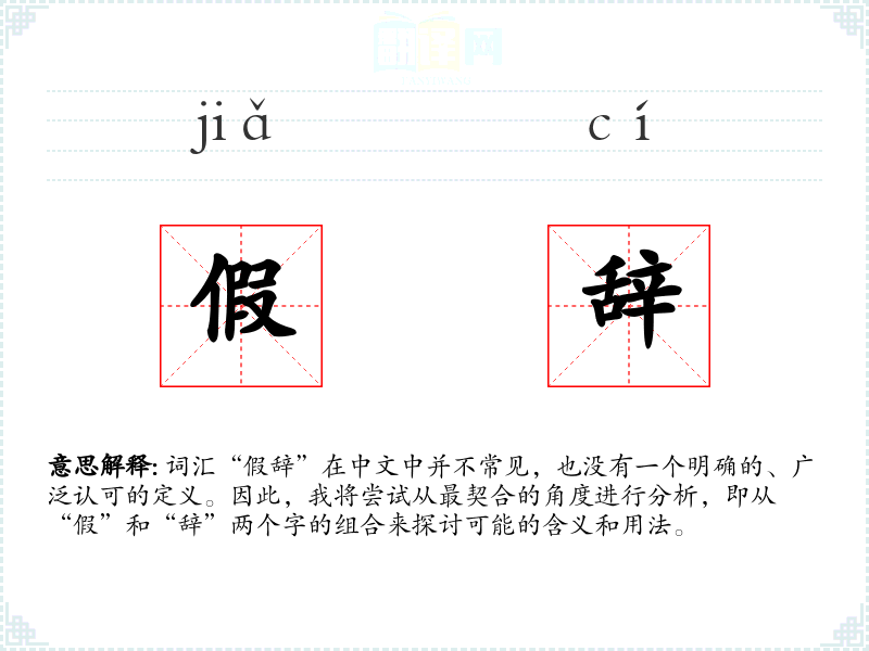 词汇“假辞”在中文中并不常见,也没有一个明确的、广泛认可的定义。因此,我将尝试从最契合的角度进行分析,即从“假”和“辞”两个字的组合来探讨可能的含义和用法。