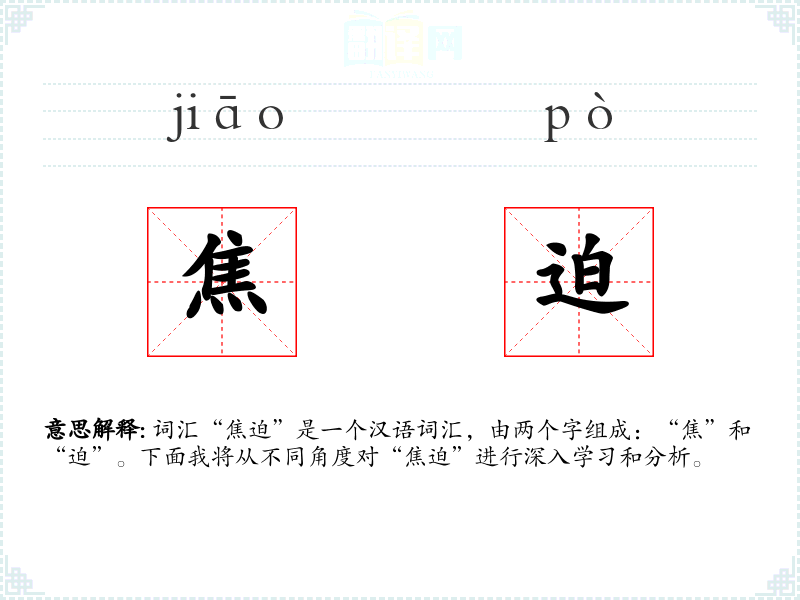 词汇“焦迫”是一个汉语词汇,由两个字组成:“焦”和“迫”。下面我将从不同角度对“焦迫”进行深入学习和分析。